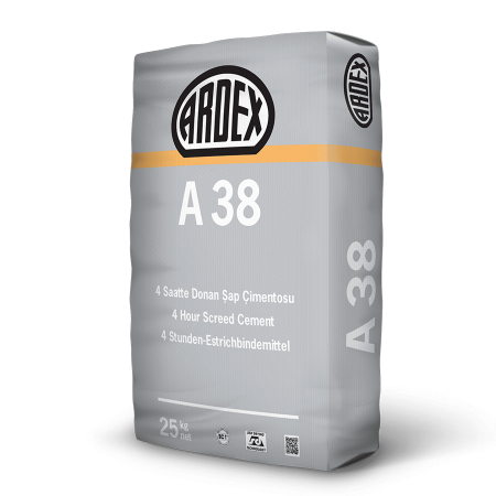 ARDEX A38 Hidrolik bağlayıcı ile astar şerbeti olarak, 25 kg ARDEX A38 torbasına 25kg 0 – 5mm kum ve 50lt E75 ilave edilerek şerbet kıvamında uygulanabilir.