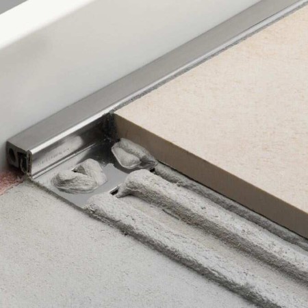 Profilin dış yüzeyi, seramik kaplamaların simetrik yuvarlak iç köşelerini oluşturur. Entegre edilmiş derz kanadı sayesinde, seramikle arasında belli bir derz boşluğu sağlar.